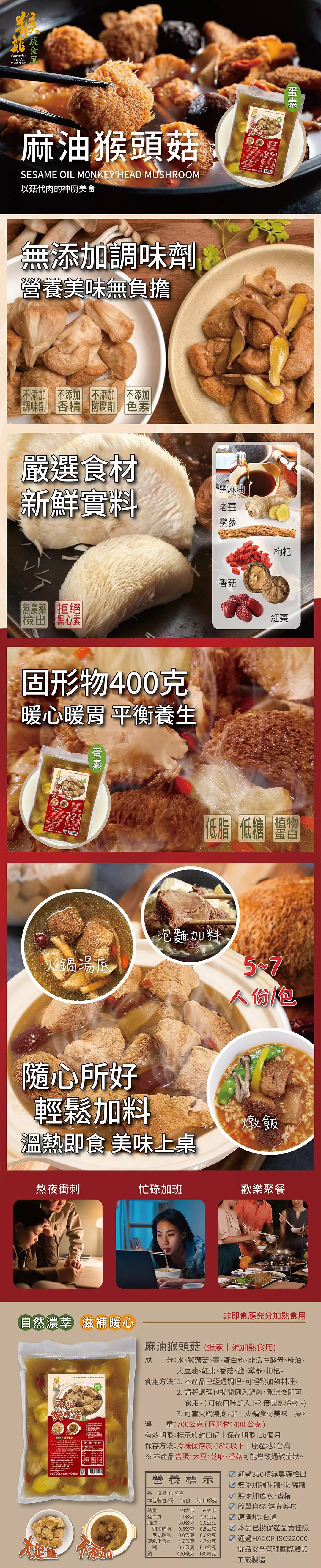 麻油猴頭菇(700G / 蛋素) / 低溫配送